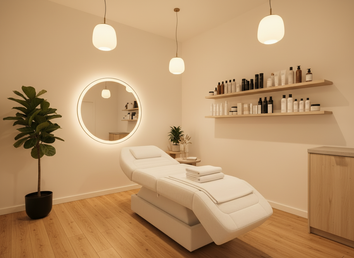 Med två komfortabla stolar och en behandlingssäng,